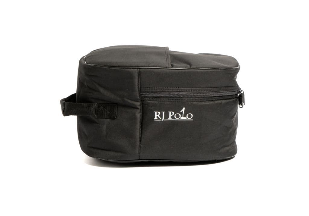 The RJ Polo hat bag is ideally suited to protect your helmet when not in use. Features zip closure, side pocket, and easy-to-carry strap on the top. Fits most polo helmets including Instinct, Charles Owen and other leading brands. Available in black only.